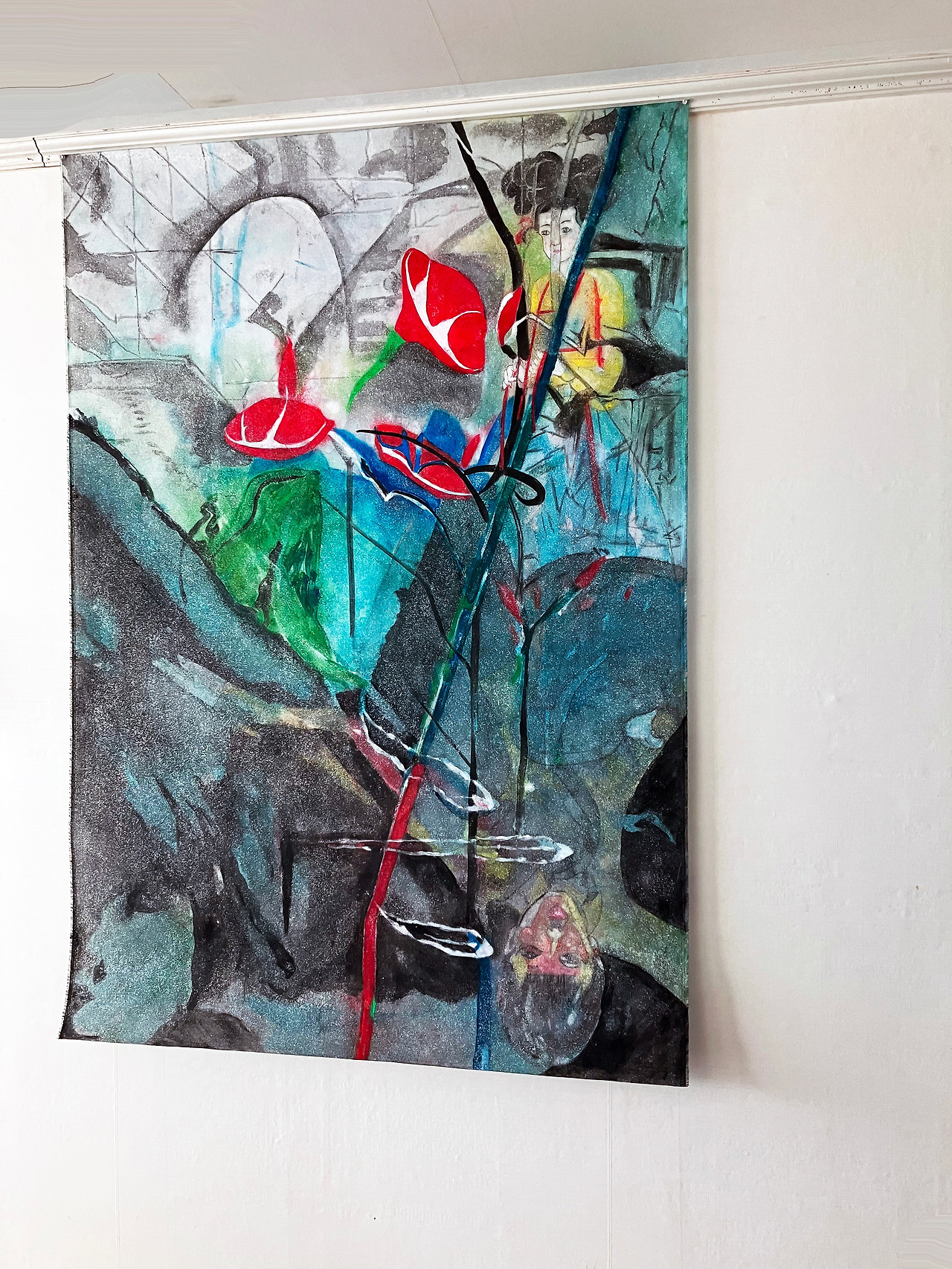 Louis Chul-joo Choi, a pond reflecting the image of one's present desires-sketch 3, 113X164cm, acrylic and composite materials on cloth, 2024