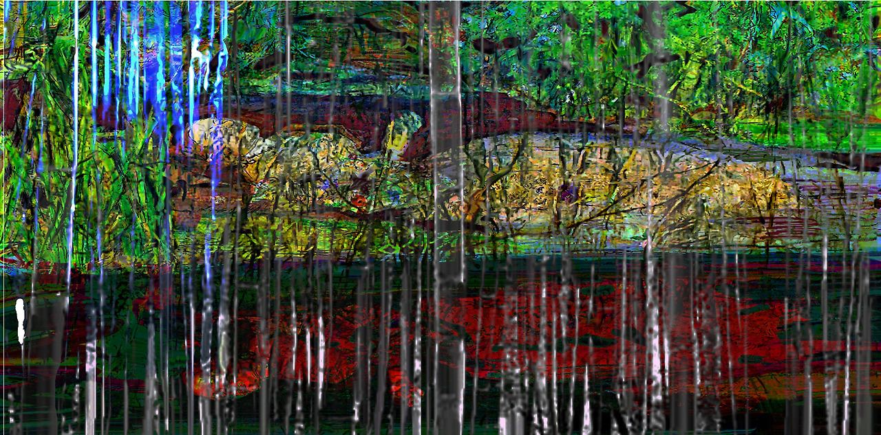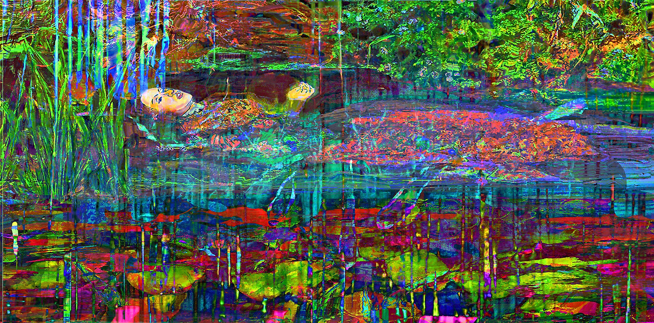 Louis Choi chuljoo, bamboo forest b262-Like the movie Ophelia, false love and war between countries end their deaths-pond-mirror, a hand-painted picture on a computer