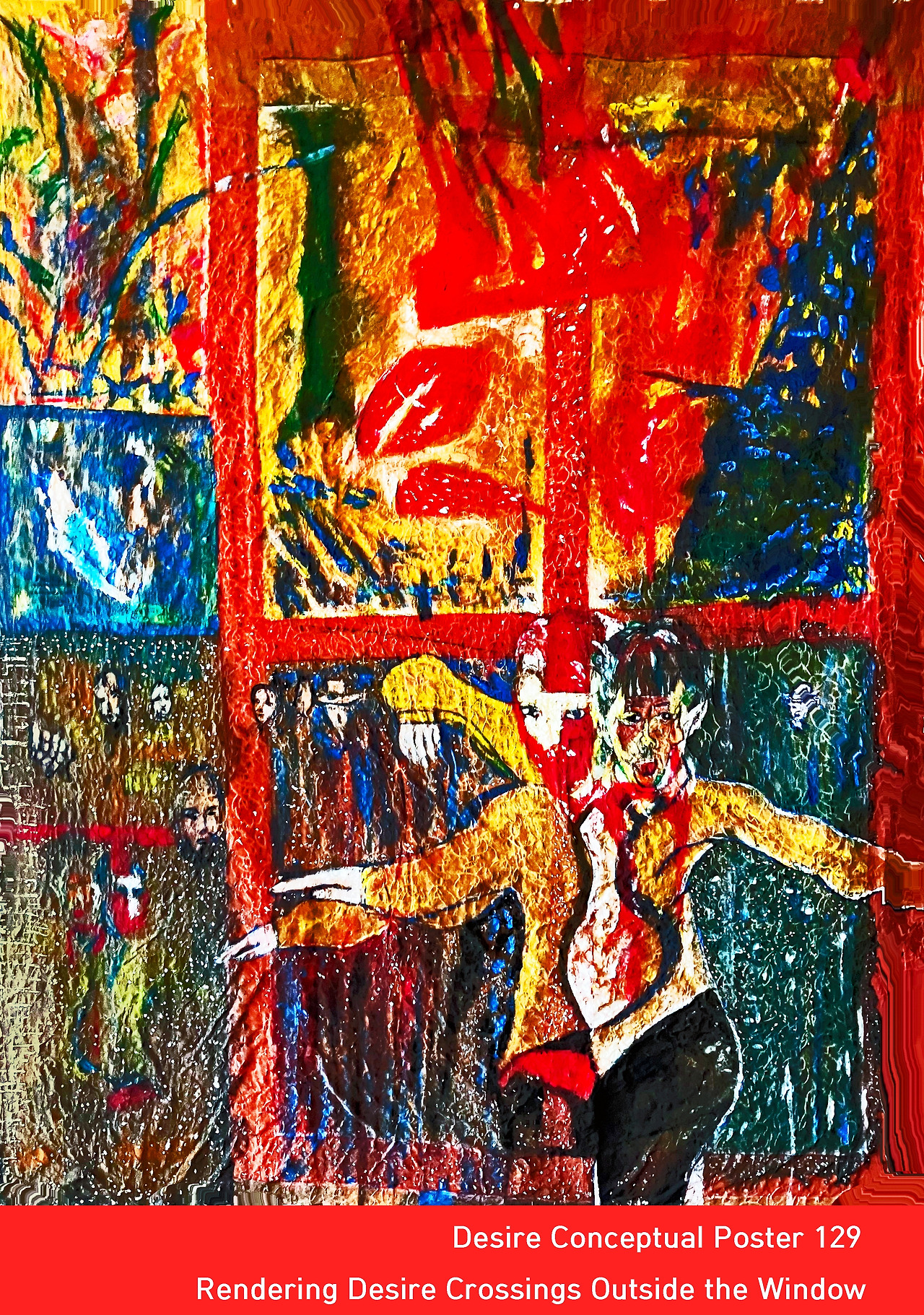 Louis Choi Chul-joo’s Morning Glory (poster; morning glory and fish-Mona Lisa design) operates not as a representational depiction of reality but as a cognitive visual apparatus that transforms the visualization of absence into a site for the philosophical contemplation of desire, wherein abstraction functions not as a formal negation but as an epistemological structure that converts the disjunction between language and image into the generative principle of desire; in this work, where language fails to stabilize meaning, the image intervenes as the substitute for that linguistic insufficiency, visually articulating the movement of desire through its compositional grammar—through chromatic contrast, reflective inversions, and spatial ruptures—thus extending the semantic field of language into a visual syntax that materializes cognition; the inverted human figure mirrored beneath the pond, the symbolic red stems, and the deep blue spatial abyss together construct a field in which the absence of the Real does not signify emptiness but instead becomes the very motor of desire, producing what may be called a substitutive realism, a mode in which abstraction replaces the absent Real and, paradoxically, reveals its cognitive structure more profoundly than direct representation could; within this process, language’s failure to fix meaning is transfigured into an event of vision, wherein the spectator, recognizing simultaneously the negation of the linguistic and the reflection of the visual, experiences perception not as mere sensory reception but as a philosophical event operating within the cognitive structure of lack; thus, Morning Glory realizes Choi’s concept of reversible illumination, in which language and image illuminate one another reciprocally, generating meaning through their mutual reflections, while this continual slippage and rotation of meaning around the axis of absence constitutes a visual grammar of desire that transforms the absence of the Real into a cognitive syntax of symbolic production; consequently, abstraction here extends beyond the denial of representation to become a philosophical device for the contemplation of lack, providing empirical validation for Choi’s Art Theory of the Structure of Desire and demonstrating that art does not mirror the Real but instead reflects the structure of its absence, reconstructing perceptual reality through the visual logic of desire; ultimately, Morning Glory stands as an exemplary philosophical construct in which linguistic meaning expands into visual form, showing that abstraction can serve as a medium of cognitive realism wherein the image substitutes for the Real and allows the subject to think, rather than merely to see, through the aesthetic experience of desire and lack.