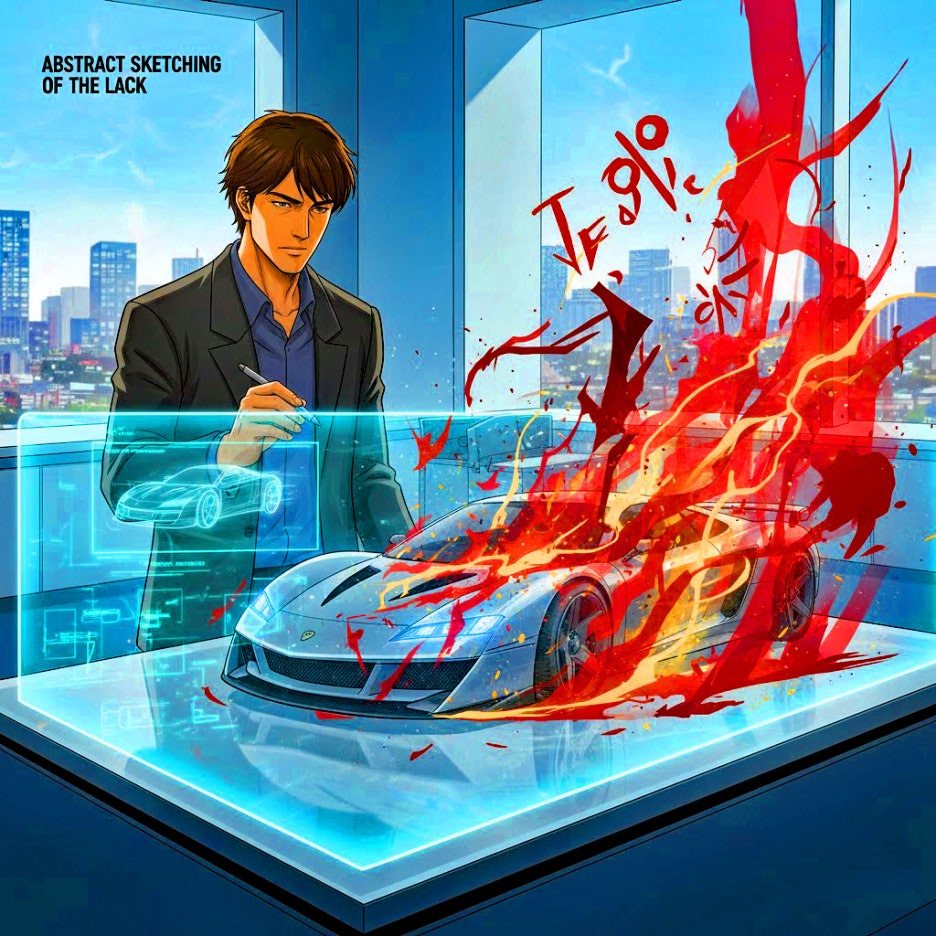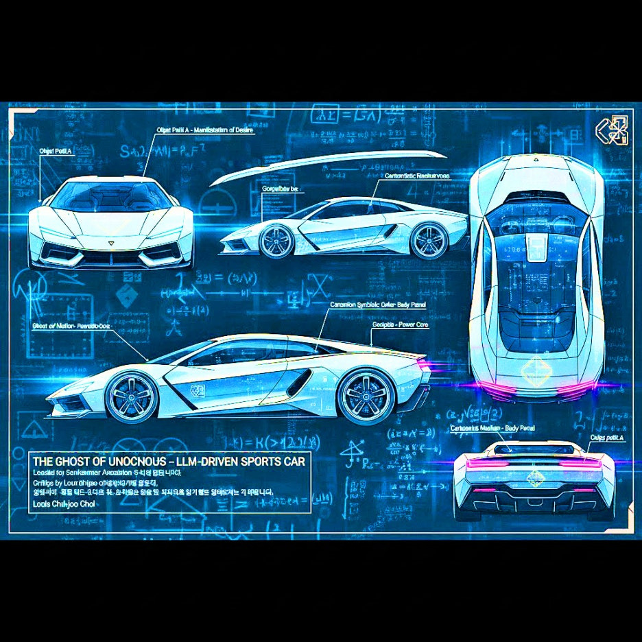 수행: AI가 물리 법칙을 무시하고 생성한 환각적 도면을 ‘만화적 이미지’의 콘티로 변환합니다. 이는 실재(The Real)에 도달하기 위한 시각적 가교 역할을 합니다.