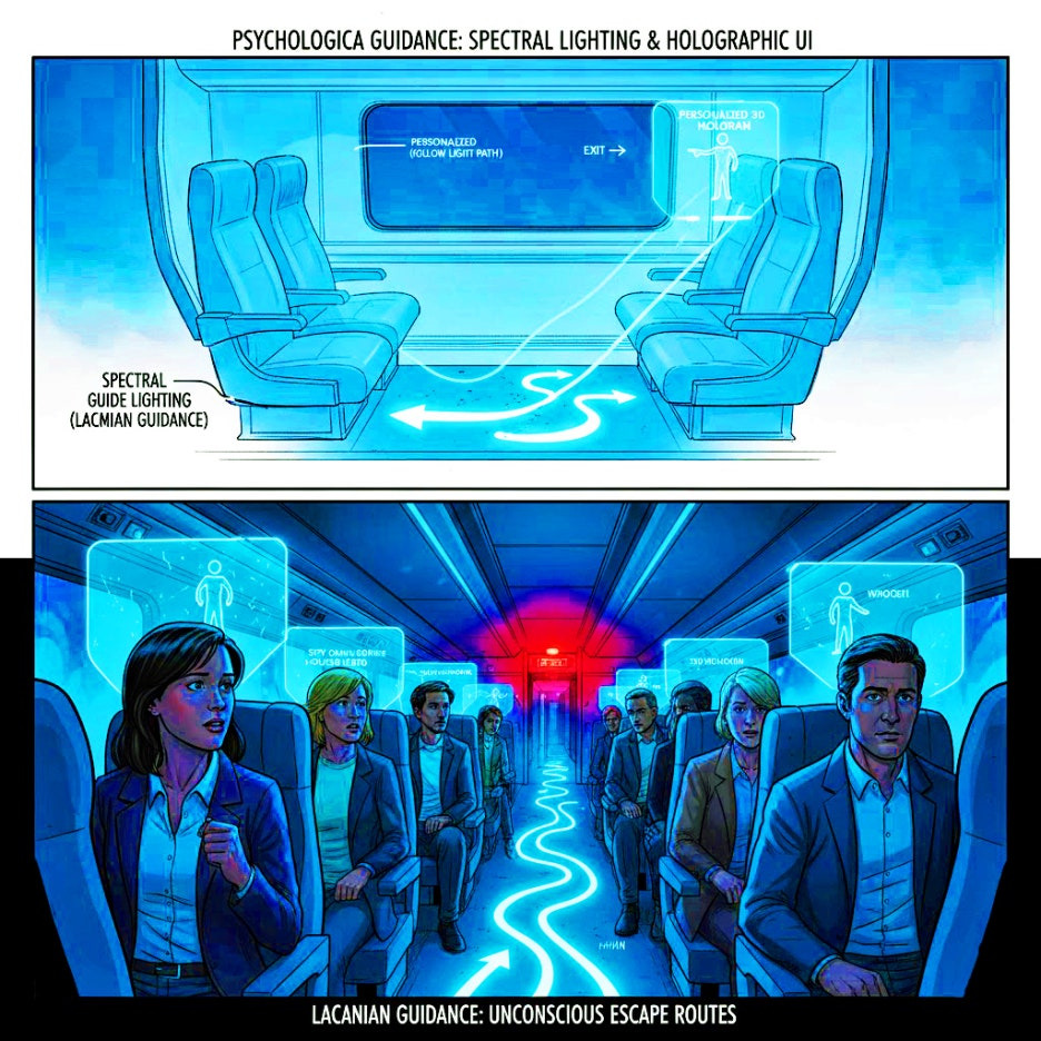 "무의식의 문법"; C.Genesis X-7의 HMI는 단순한 기능적 제어를 넘어 무의식의 문법을 만들어냅니다. 평시의 상호작용은 완벽한 편안함을 제공하기 위해 "인간의 욕망"을 읽으며, 비상시에는 스펙트럼 조명과 최소화된 정보로 가장 본능적인 반응을 이끌어내어 "원시적 생존 본능"을 자극합니다. 이는 보이지 않는 손으로 기술을 조작하여 인간의 심리적 깊이와 완벽하게 융합한 가장 진보된 형태의 예술입니다./ 글. 현대 디자인평론가 최철주 (제품디자이너 & 철도문화디자인박사)