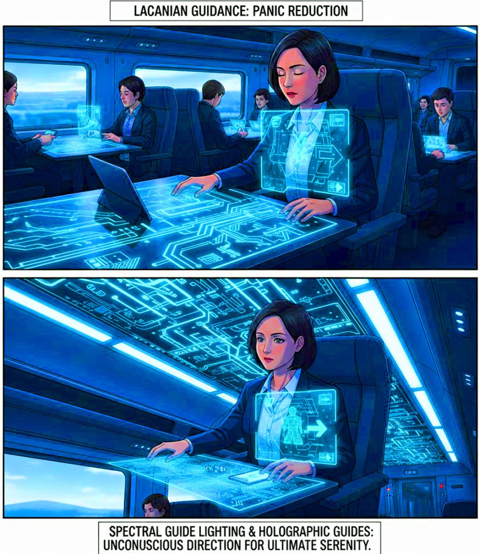 더 나아가, 디자인 내부에 "무선 전력 네트워크"와 "라캉적 데이터 매핑(Lacanian Data Mapping)"의 통합은 단순한 기술 발전이 아니다. 그것은 미학의 연장선이다. 눈에 보이는 전선의 부재는 "카투니스틱 리얼"의 선명도를 높이는 깨끗하고 정돈된 시각적 영역에 기여한다. 무의식적인 사용자 패턴을 기반으로 한 지지 및 수납 공간의 데이터 기반 최적화는 공간 역학에 직접적인 영향을 미쳐, 승객의 필요를 거의 예측하는 듯한 직관적으로 정확하고 탁월하게 지지적인 내부 공간을 만들어낸다.