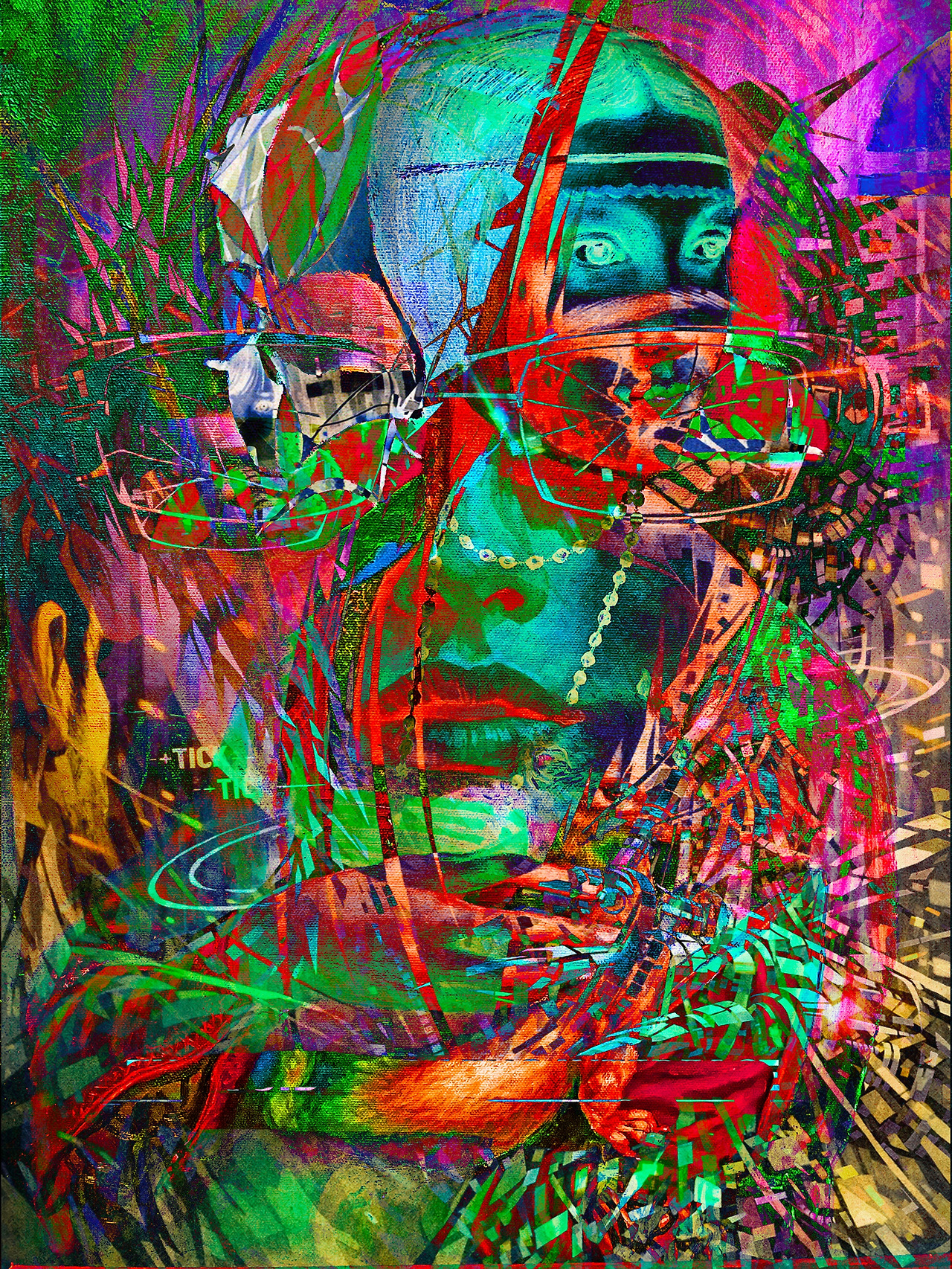 - Floating Parts: Antennas, wires, and abstract electronic elements floating around glasses suggest a ghostly structure outside the laws of physics.