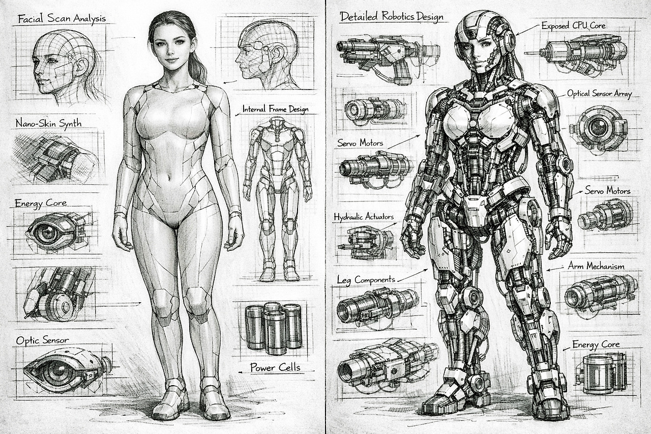 개념추상 리얼리즘 AAS 제품디자인, 인간형 AI 로봇 디자인 [14] Pop-Art AAS Realism Product Design Artist, Choi Chul-joo (Master of Product Design and Doctor of Culture Design) / 제품 인간형 AI 로봇, 2030 AI 로봇의 만화 현실주의; 기계 부품에 중점을 둔 완전 인간처럼 보이는 로봇과 복잡한 기계 장치를 간단한 만화 선으로 압축합. Cartoon Realism in 2030 AI Robots; Compresses fully human-looking robots and complex mechanical devices with a focus on mechanical parts into simple cartoon lines. 팝아트 AAS (Abstract Application Sketch) 리얼리즘 AI 로봇 디자이너 루이 최철주의 욕망개념 추상 제품디자인 욕망 공식 적용 추상디자인: 현대 콘셉트 AAS 팝 리얼리즘 제품디자인 아티스트 최철주는 타인의 욕망 예술에 대한 추상적 개념적 접근과 팝아트의 제품디자인 형식 및 언어적 추상 이미지를 결합합니다. 그의 욕망 개념, 즉 개념 추상 미술이 등장하고 형이상학적, 철학적 빛에서 강조되는 언어적 의미 개념과 충돌하는 그림이 인공 조명과 함께 극적인 제품디자인 이미지를 연출합니다. 새로운 욕망의 기표로서 결핍 욕망의 시각화는 결핍 욕망의 시각화 공식을 통해 언어 의미를 리얼리즘 이미지로 시각화합니다. 이것은 결핍 욕망의 시각화 공식 “M_desire = ∑∅∂ / (1 - ∂)” 으로 인간 욕망의 구조를 수학적·철학적·예술적으로 해석하려는 시도입니다. 이 공식은 최철주의 욕망 이론과 개념 추상 미학을 결합하여, 인간 내면의 결핍과 반복 충동을 기계적 언어 의미를 리얼리즘 이미지로 시각화합니다. Contemporary Concept AAS Pop Realism Product Design Artist Choi Chul-joo combines an abstract conceptual approach to the art of desire of others with product design formats and linguistic abstract images of pop art. His concept of desire, or conceptual abstract art, appears and a painting that conflicts with the concept of linguistic meaning emphasized in metaphysical and philosophical light, creates dramatic product design images with artificial lighting. As a new sign of desire, the visualization of deficiency desire visualizes the meaning of language as a realist image through a visualization formula of deficiency desire. This is an attempt to interpret the structure of human desire mathematically, philosophically, and artistically with the visualization formula of deficiency desire "M_desire = ∑∅∂ / (1 - ∂)." This formula combines Louis Choi's theory of desire with conceptual abstract aesthetics, visualizing the human's inner deficiency and repetitive impulse with a realist image. / 현대 개념 추상 제품디자인 신작 읽기 - 현대 개념 팝아트 디자이너와 현대 개념 추상 제품 디자인 미학 비평가 최철주 제품 디자이너는 시각 예술 이론을 통해 미적 가치 디자인의 예술성을 검토하고, 추상적 욕망 개념과 언어적 의미 구조를 반영하여 인식과 미적 구조를 해석함으로써 추상적 욕망의 언어적 의미와 동일한 실제 제품 이미지를 디자인하는 현대 개념 추상 미술 제품 디자이너입니다. Modern Concept Abstract Product Design Reading New Works - Contemporary Concept Pop Art Designer and Contemporary Conceptual Abstract Product Design Aesthetic Critique by Choi Chul-joo Product Designer Choi Chul-joo is a Contemporary Concept Abstract Art Product Designer who examines the artistry of aesthetic value design through visual art theory and designs actual product images identical to the linguistic meaning of abstract desires by interpreting perceptions and aesthetic structures by reflecting abstract desire concepts and linguistic semantic structures through "morning glory" works./ 현대미술평론가 루이 최철주는 사진 만화 미술 공예 디자인의 미적 가치 과정의 예술성을 검증하고 시각 예술 이론을 통해 작품의 의미에 접근하는 현대미술 개념 디자인 비평가다. Contemporary art critic Louis Choi Chul-joo is a contemporary art concept design critic who verifies the artistry of the aesthetic value process of photographic cartoon art and craft design and approaches the meaning of the work through visual art theory.: