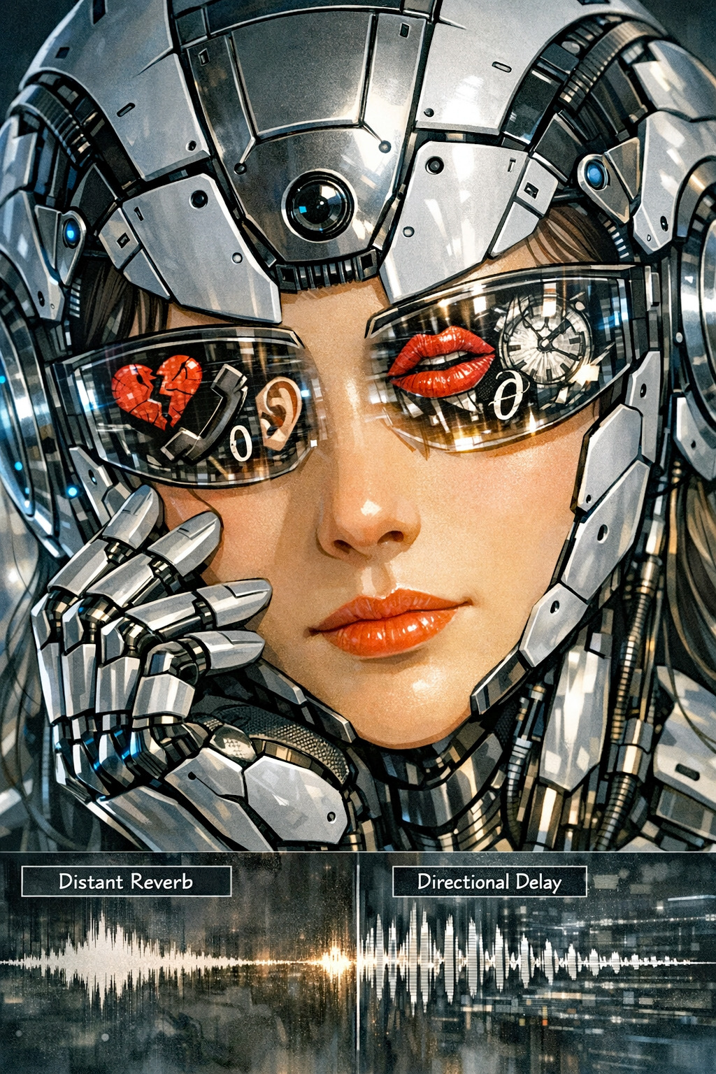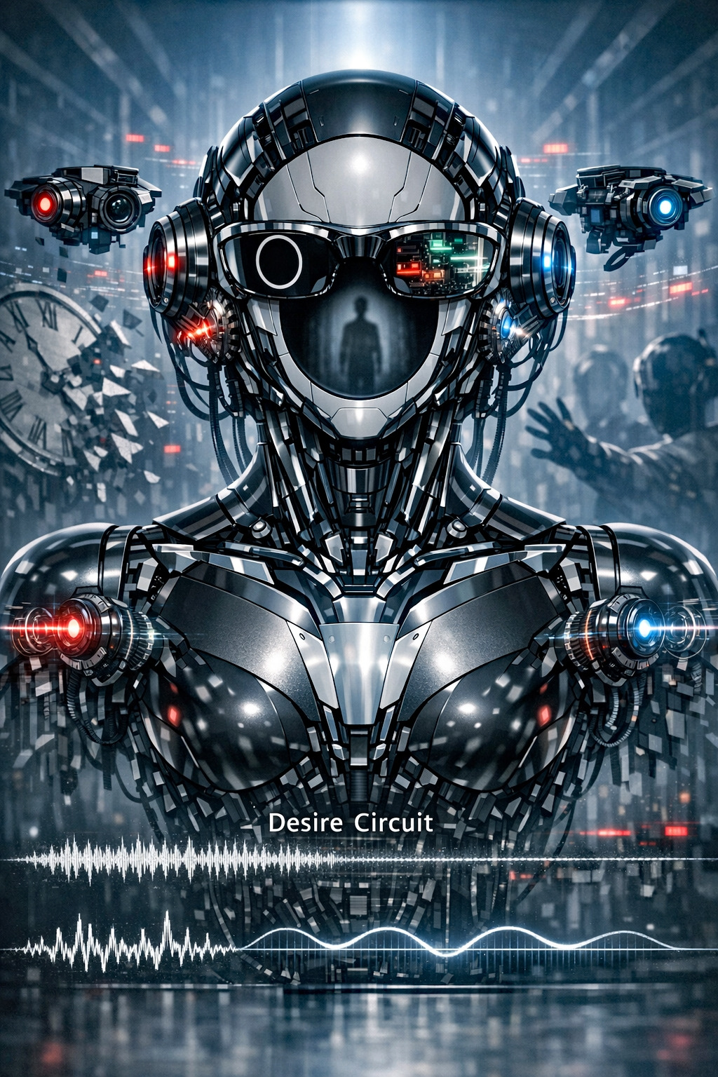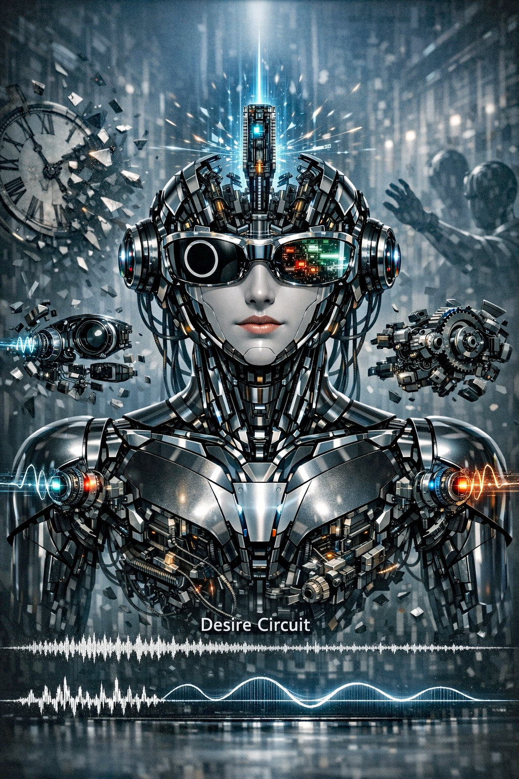 • Design execution: The AI robot's micro diaphragm outputs low-band 'white noise' and constant 'mechanical hum' audio sound. This audibly implies that the user remains safely within the order of the symbolic system, and the physical form of the glasses remains perfectly symmetrical.