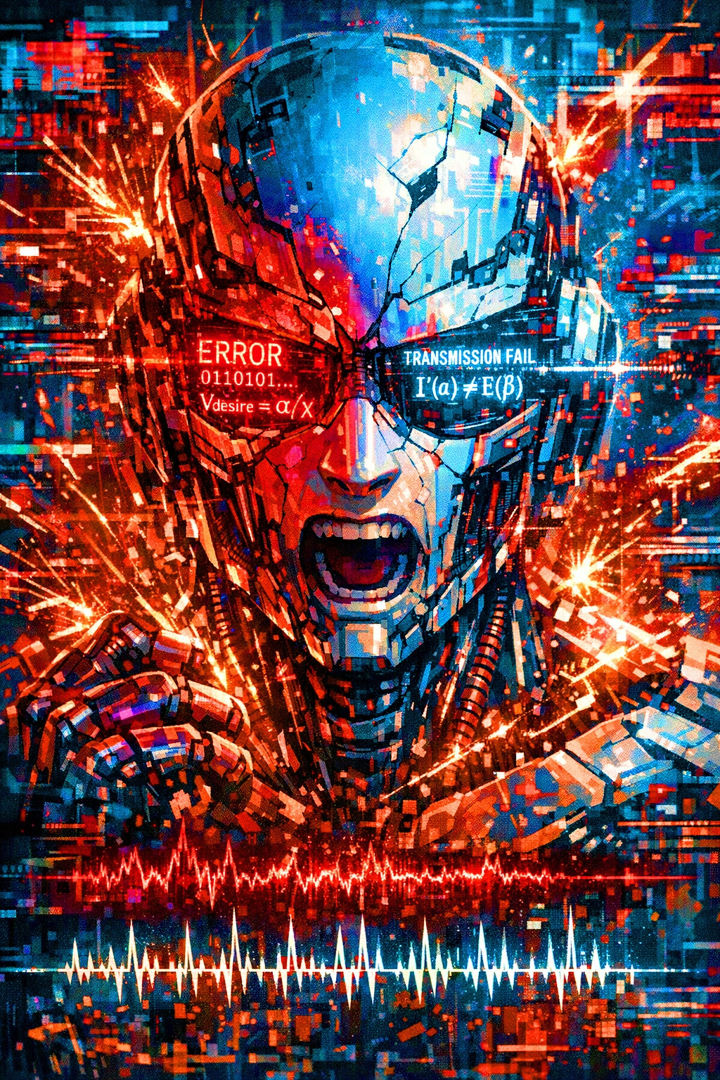 이것은 행위가 시작 전, AI로봇이 내면의 욕망이 폭발적으로 터져 나오는 순간을 시각화하며, 욕망 구조의 서사에서 욕망의 본격적인 활성화를 보여줍니다.
